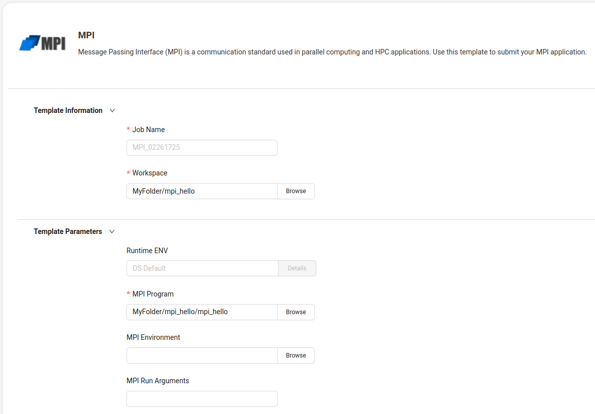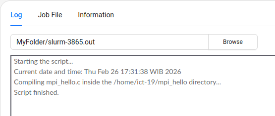 - MPI Program: pilih mpi_hello hasil dari pre-processing